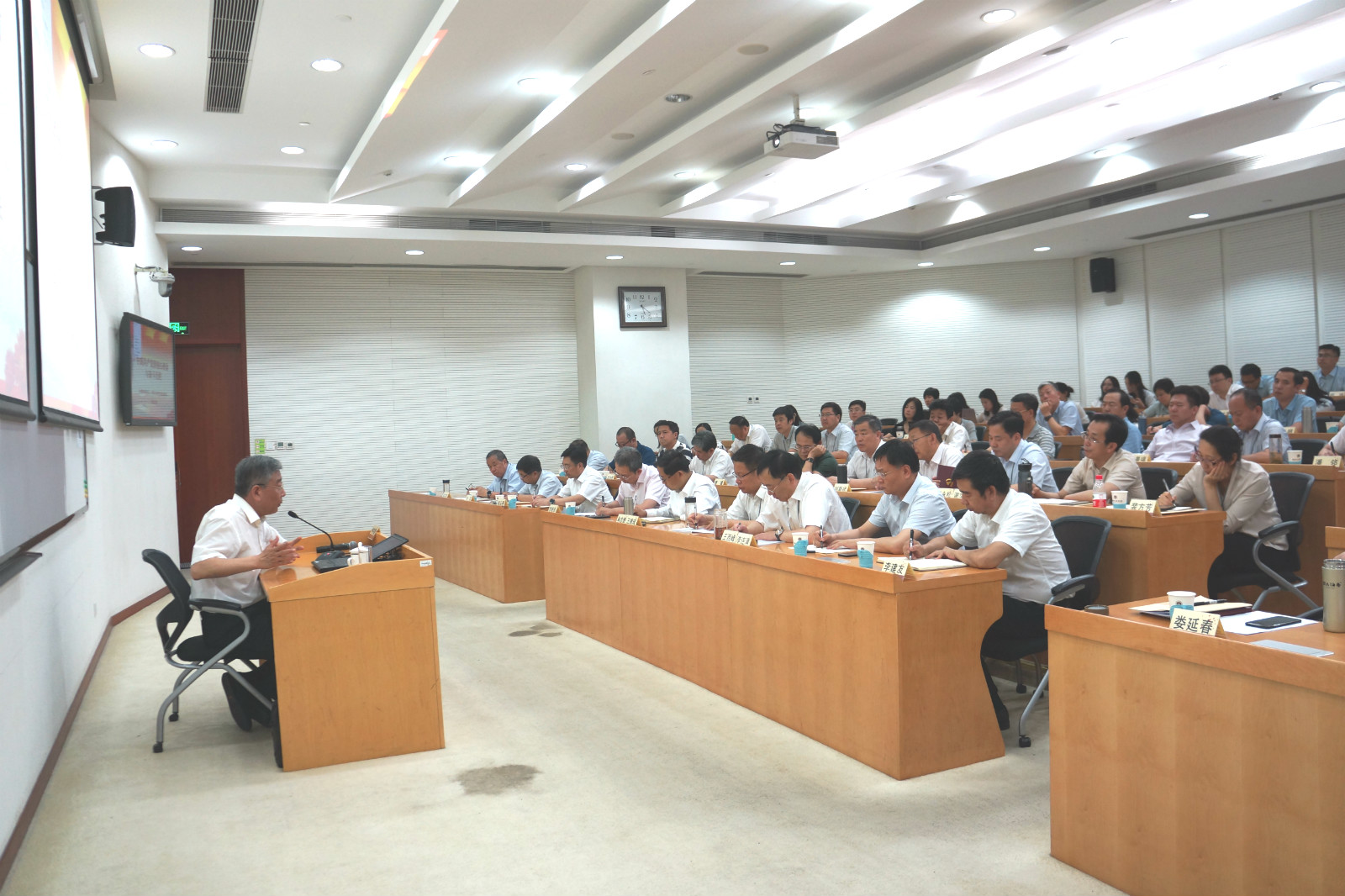 為扎實(shí)開(kāi)展“不忘初心、牢記使命”主題教育,貫徹落實(shí)國資委黨委主題教育各項工作要求,610日至628日,集團黨委在中央黨校(國家行政學(xué)院)舉辦了不忘初心、牢記使命主題教育領(lǐng)導干部專(zhuān)題培訓班。培訓班分兩期,每期5天,集團領(lǐng)導班子成員、二級單位班子成員、董監高人員、黨群人事部門(mén)負責人以及總部中層以上領(lǐng)導干部共計140余人參加了培訓。黨委書(shū)記、董事長(cháng)、總經(jīng)理王德成主持了開(kāi)班式。