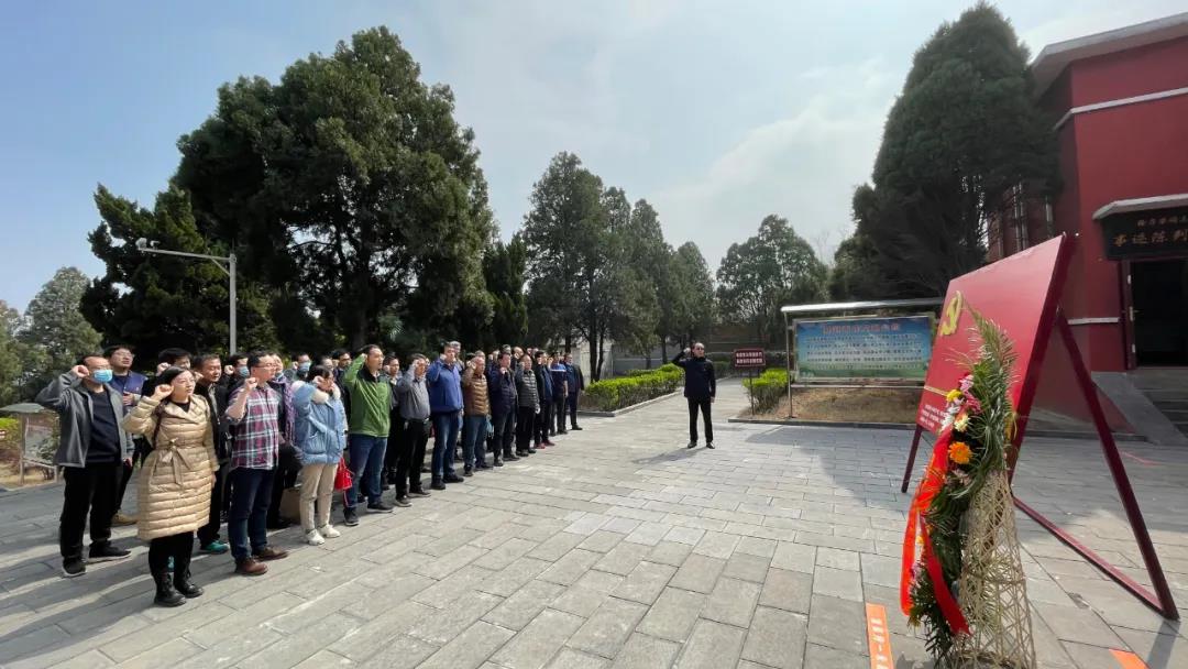 為深入開(kāi)展黨史學(xué)習教育,傳承黨的優(yōu)良傳統。當日下午,全體黨員干部來(lái)到豫西抗日革命根據地,開(kāi)展愛(ài)國主義學(xué)習教育活動(dòng),向革命烈士敬獻花籃、重溫入黨誓詞、聆聽(tīng)抗戰事跡,緬懷革命先烈的豐功偉績(jì)。